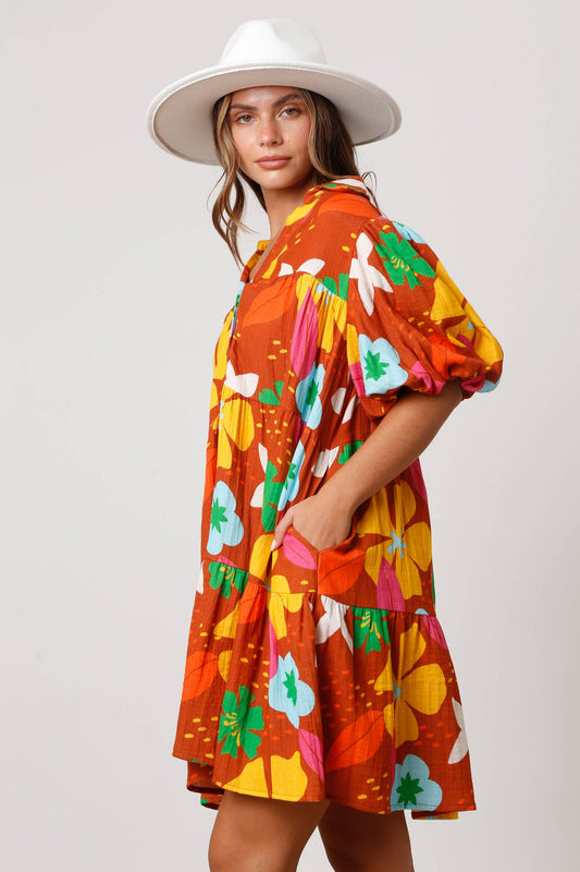 That’s Special Bubble Sleeve Floral Organza Mini Dress