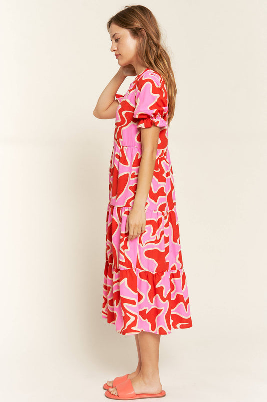 Beautiful Chaos Tiered Short Sleeve A-Line Midi Dress (2 colors)