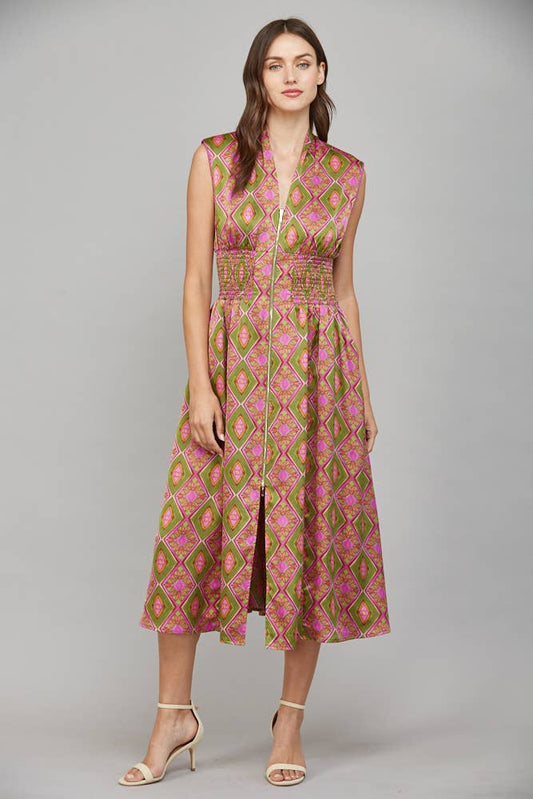 Exotic Puff Sleeve V-Neck Print Dress: THML