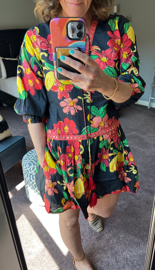 Susana Printed Throw On Sundress in Black Citrus Floral