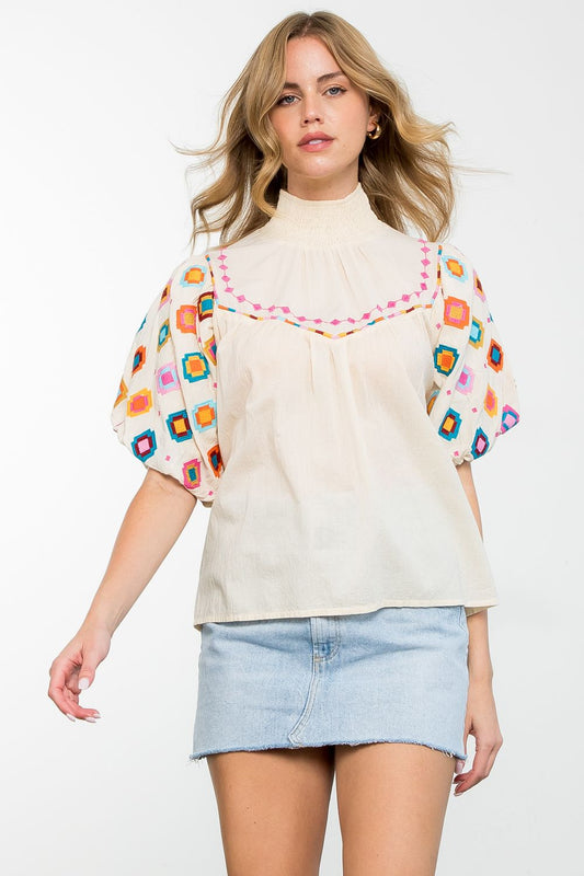 Izzy Puff Sleeve Print Top: THML