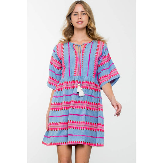 Gia Tassel Tie Pattern Knit Dress: THML