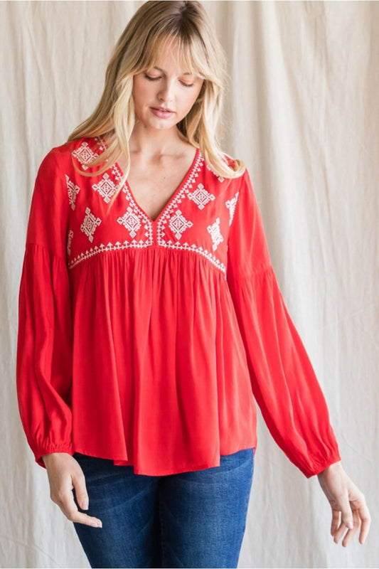 Jackie Embroidered Long Sleeve Top