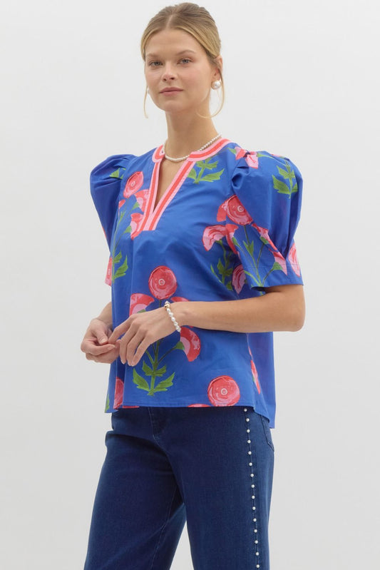 Eliza Puff Sleeve Floral Top: THML