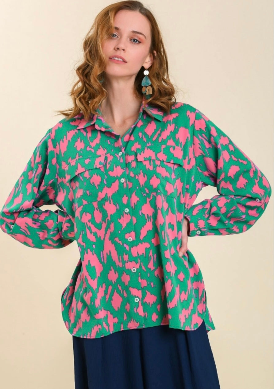 Emerald mix top that adds a fresh pop to white denim for spring or summer. This one looks amazing dressed up or down!