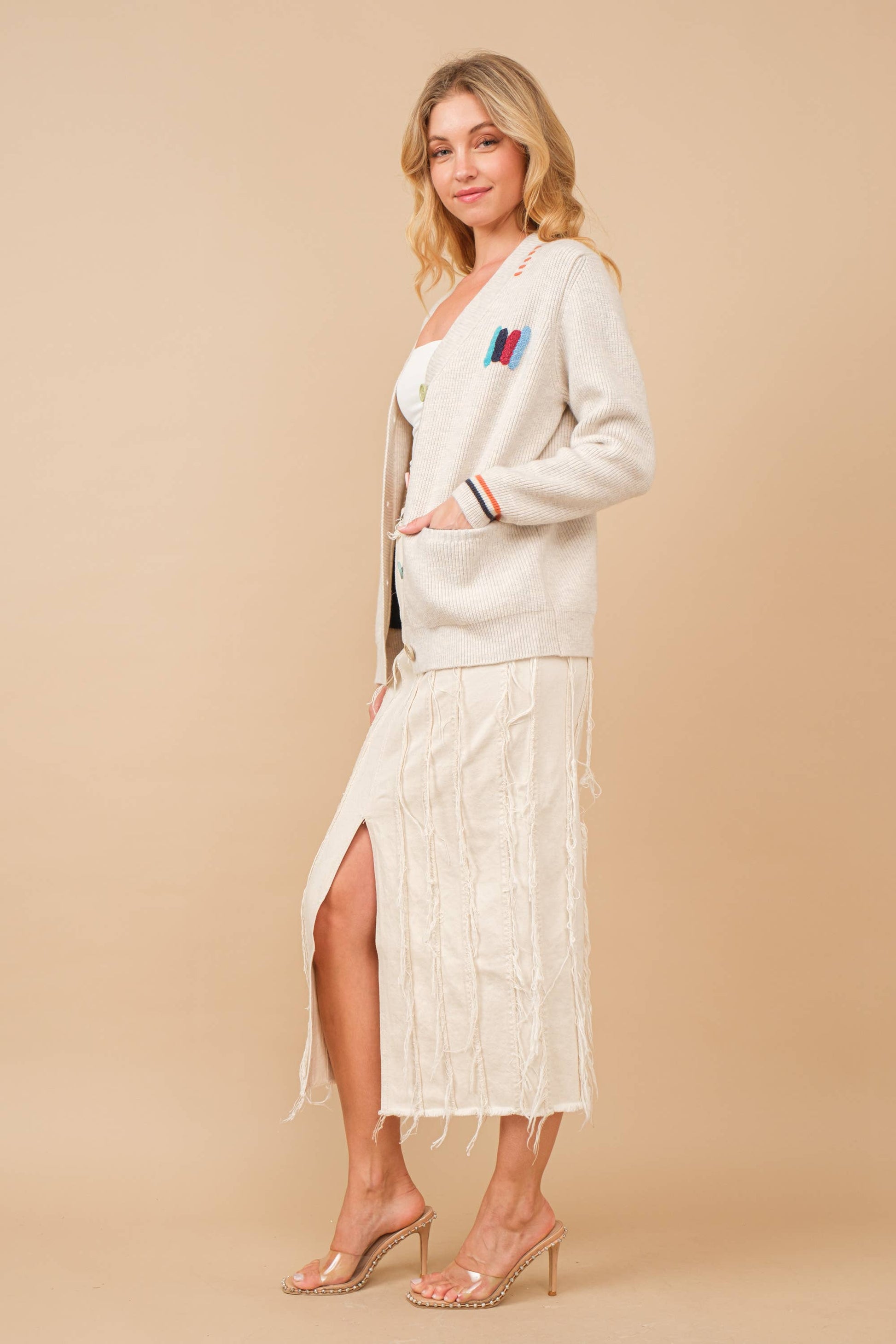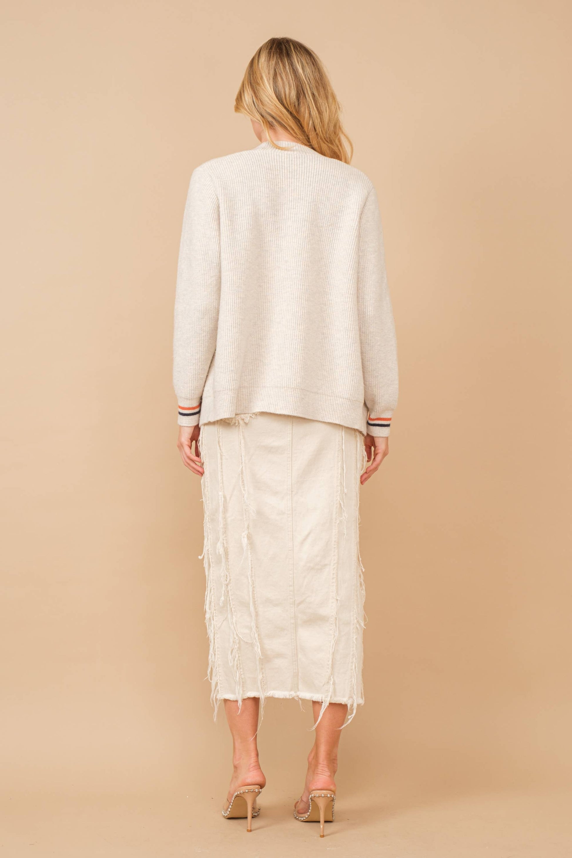 -Button Stripe Detailing Cardigan Sweater