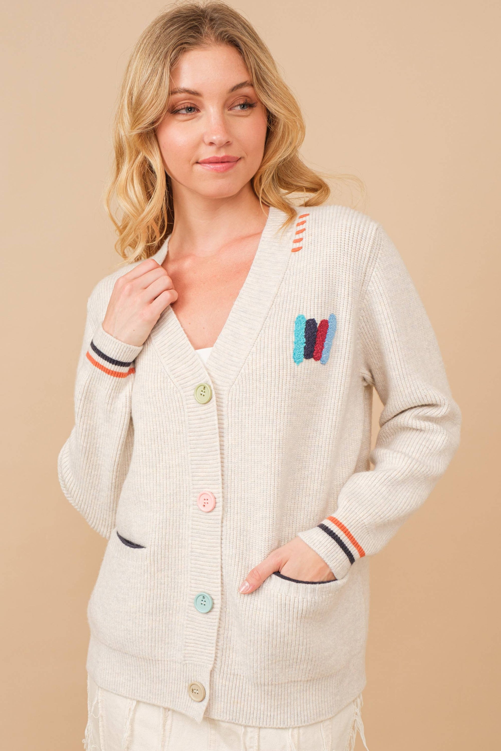 Varsity Soft Rib Cardigan Sweater