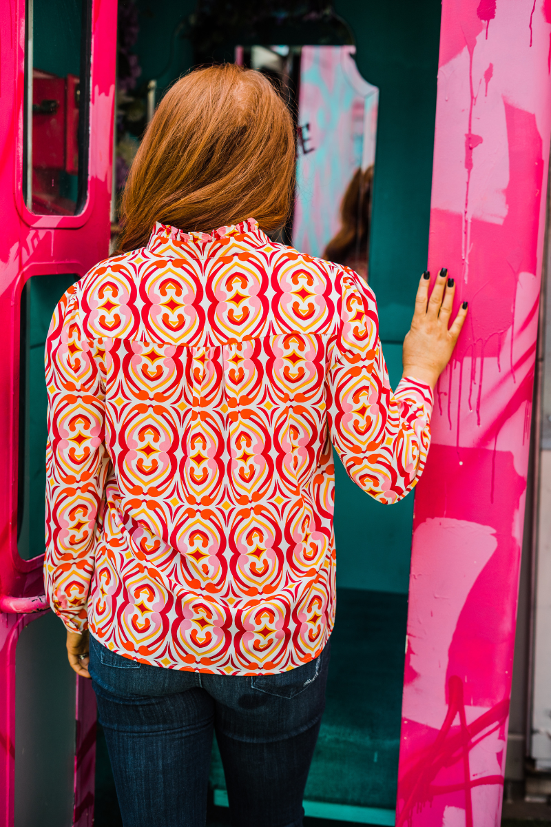 The Carmen Top is a beautiful geometric print long sleeve top. This top will definitely make you stand out in a crowd!