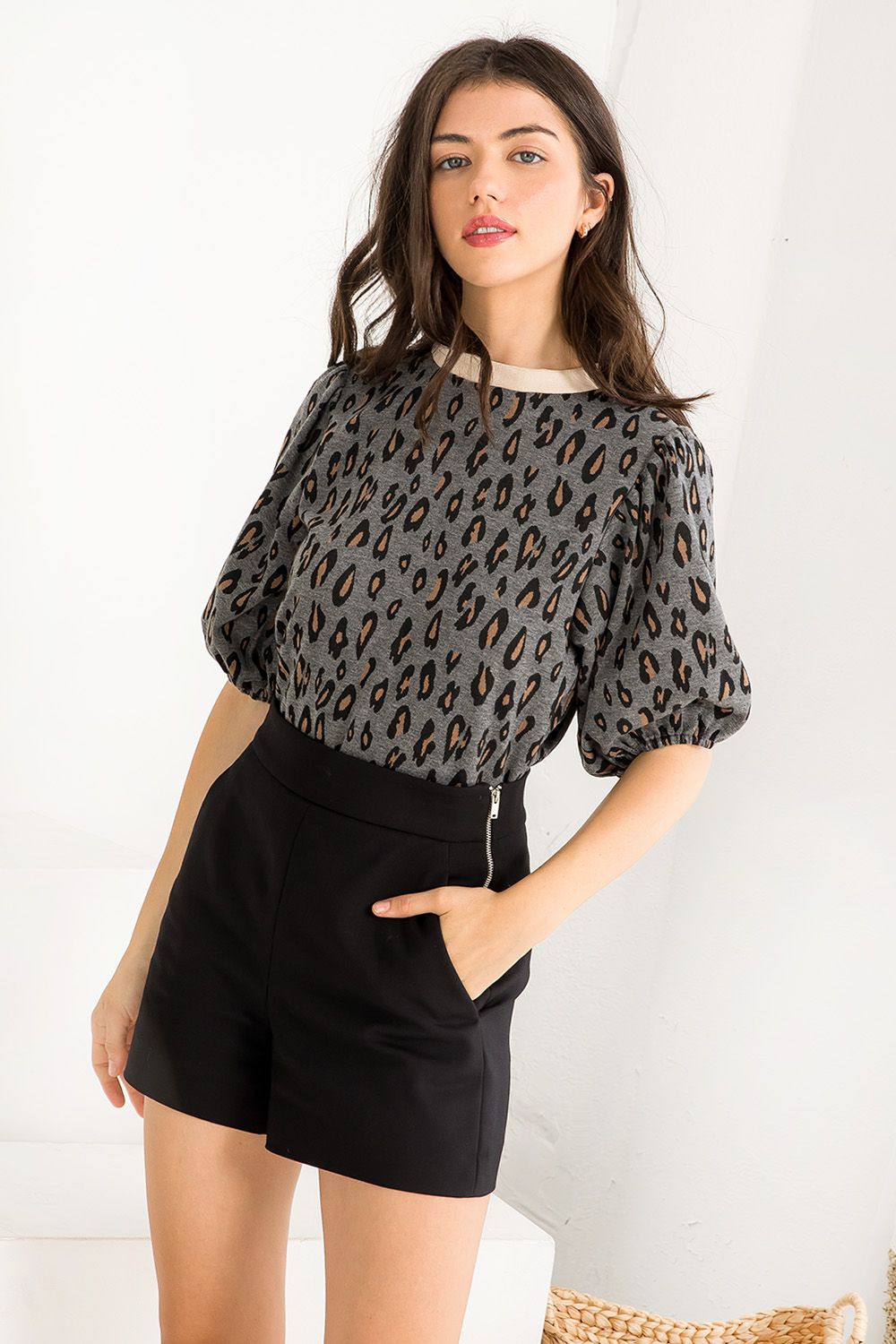 Brand new transitional top by THML that’s perfect for layering in the colder months or wearing alone in Spring/Summer/Fall. Love the print & quality fabric. Adorable not-so-basic basic! Love the puff sleeves! Neckline is accented by cream colored suede trim.