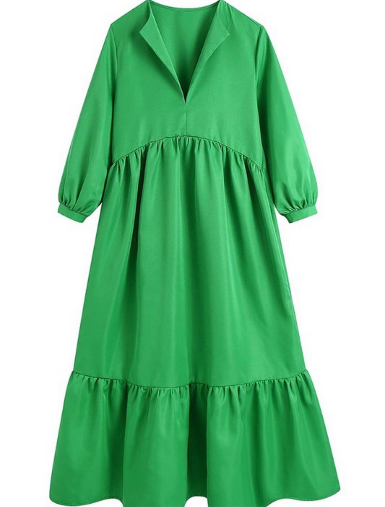 Need to throw on something and feel fabulous? This is your dress. Easy fit! Gorgeous color! 3/4 sleeves! This is an easy flowy tiered dress that is just waiting for the accessories. Elasticized around the bust area for a comfortable stretchy fit. Add a standout pair of dangle earrings or a statement necklace & you’re ready to face the day.