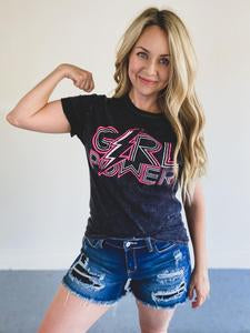 Make a statement or just look cute in this soft marbled graphic tee with vneck & hot pink print. This is such a unique tee...it almost looks like washed black denim. Adorable! I would order true to size in this or size up!