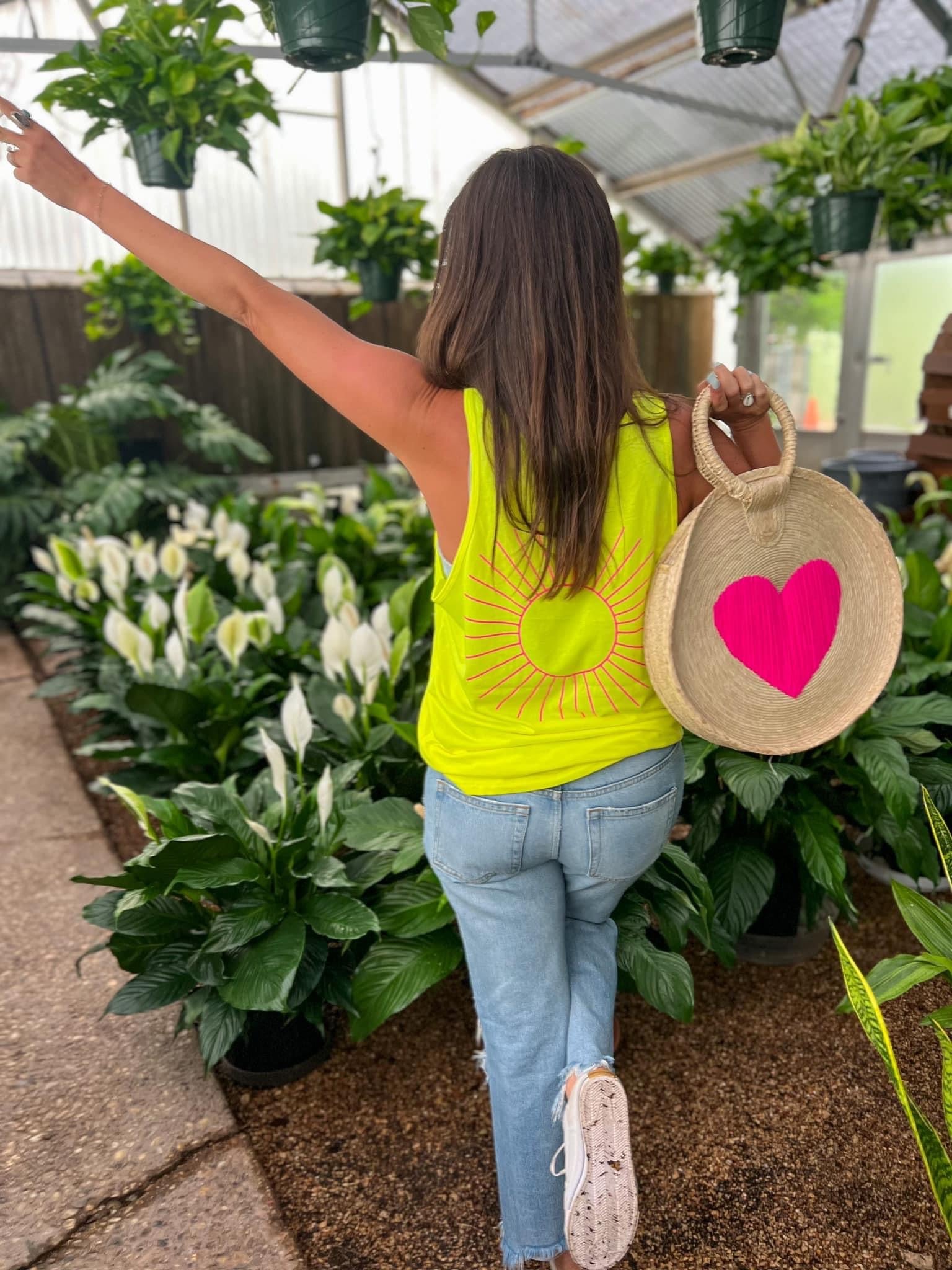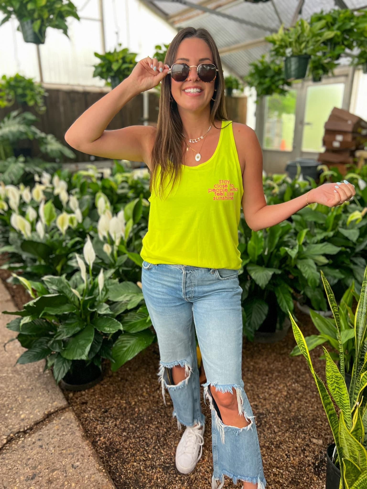 Neon yellow w/ contrasting color text: “Stay close to people who feel like sunshine”