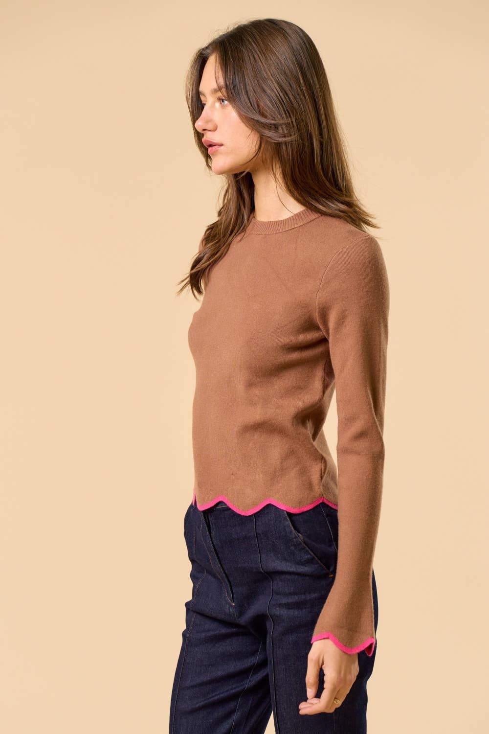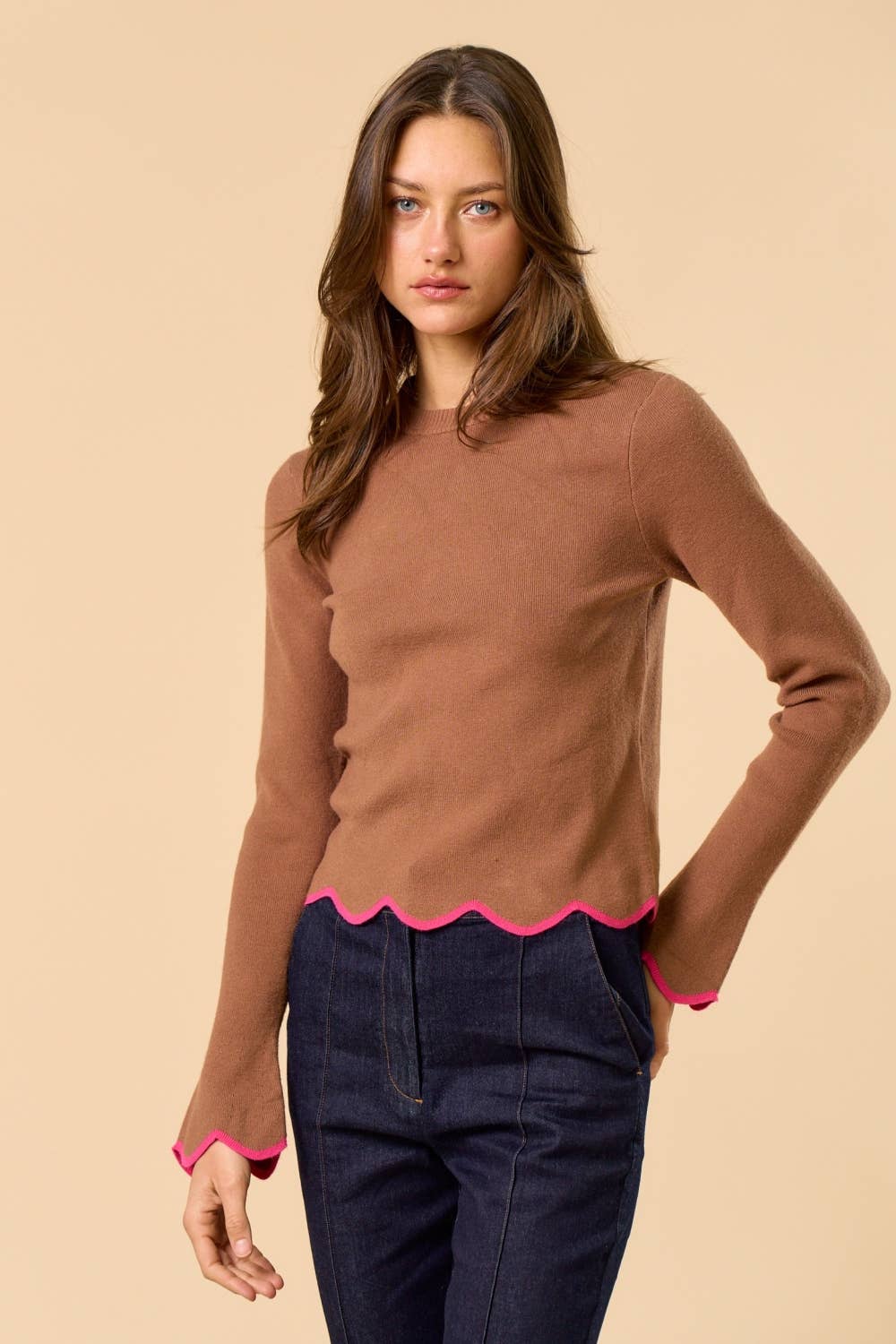 Play Date Scallop Edge Sleeve Sweater Top
