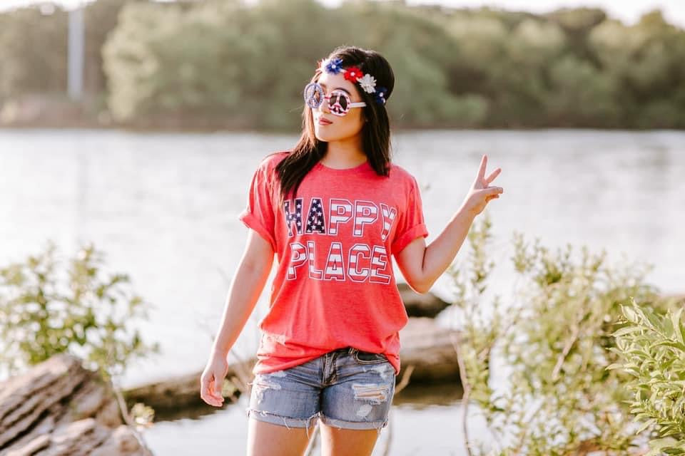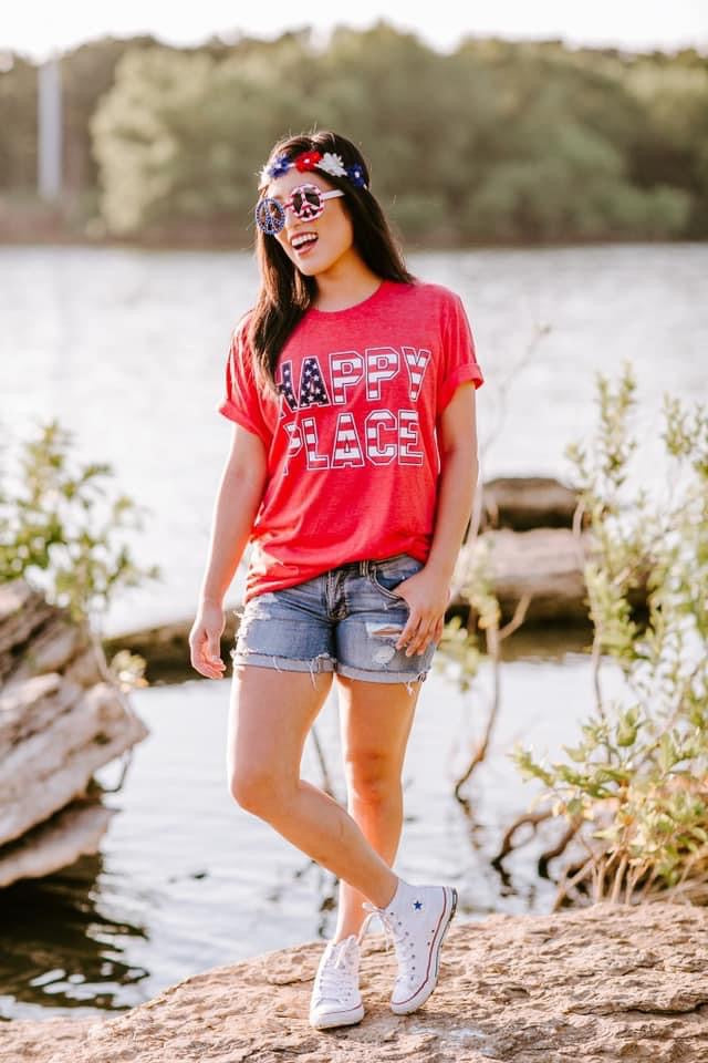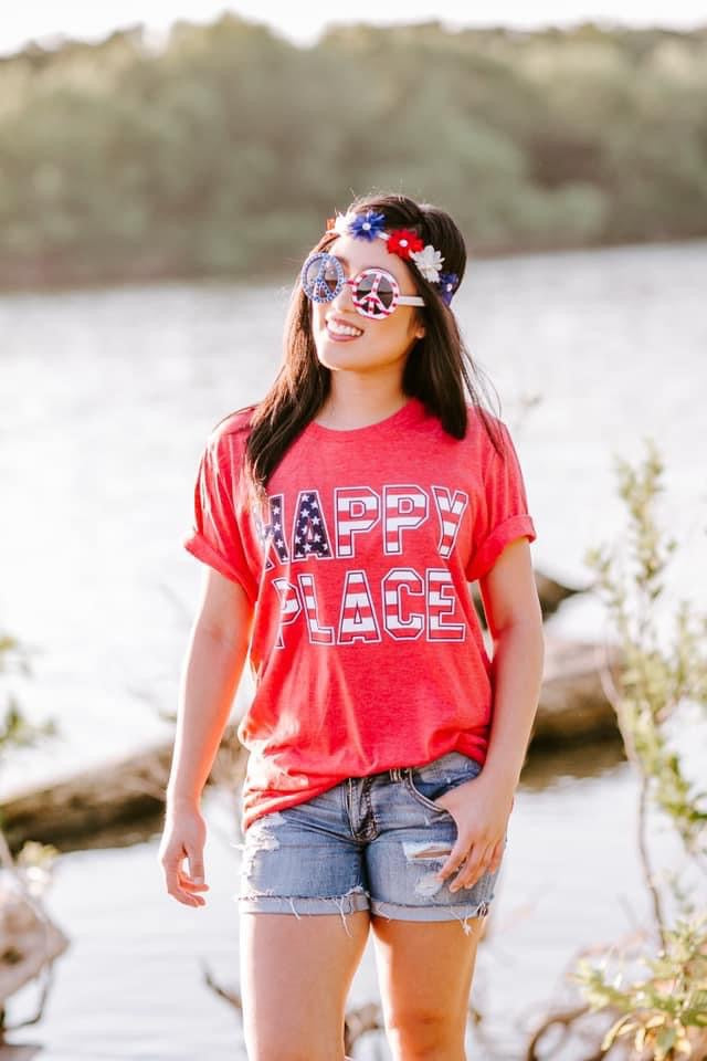 Where’s your Happy Place? Love this patriotic tee perfect for everyday or for that special 4th of July outfit.