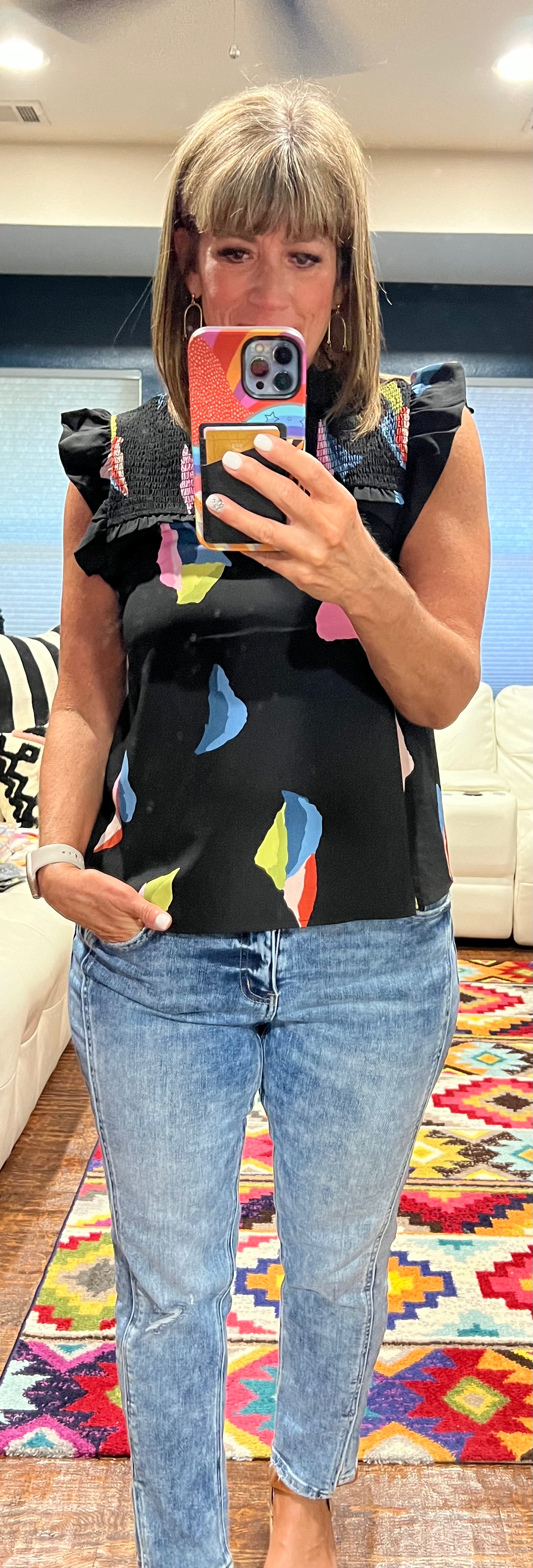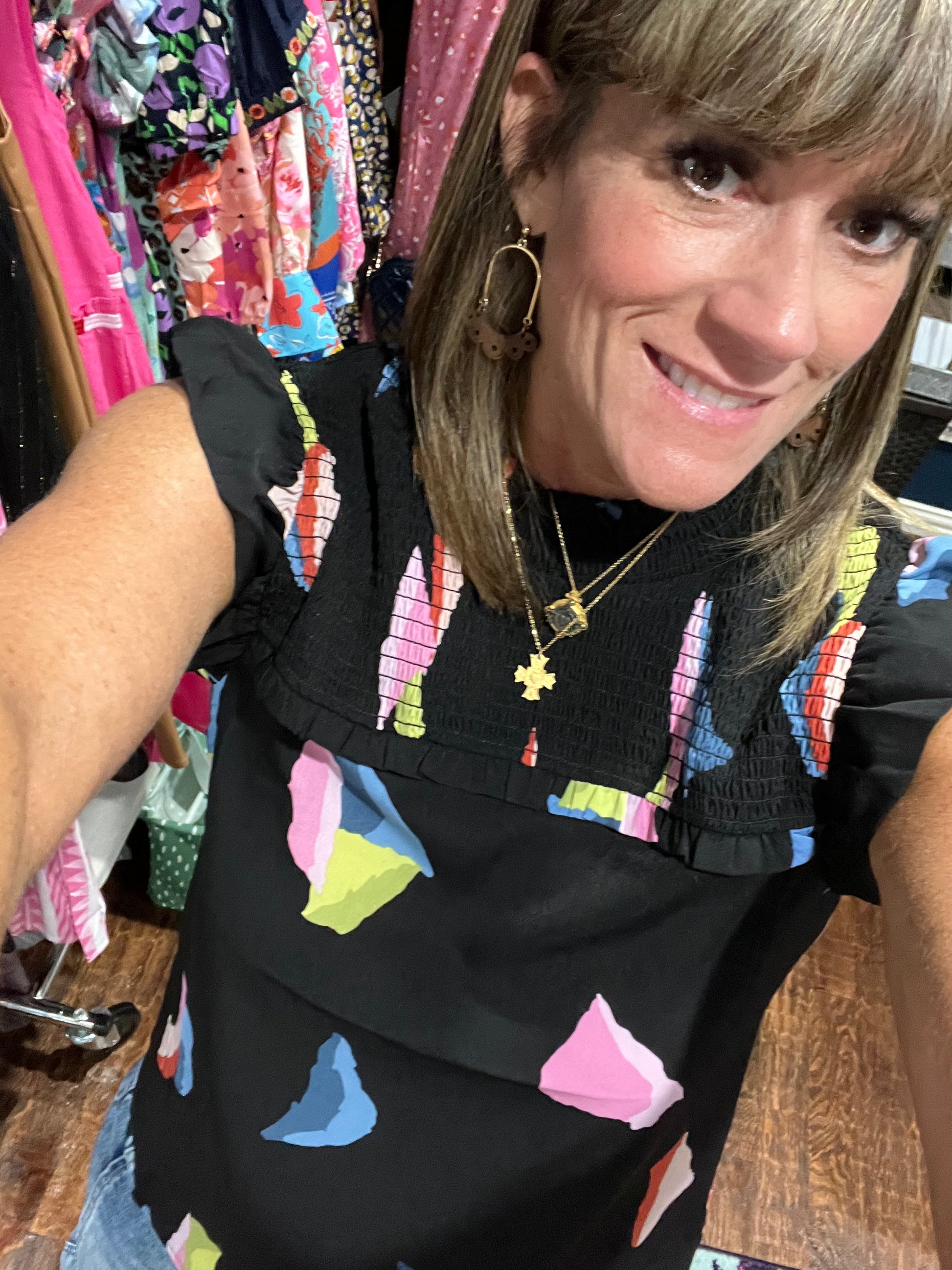 My favorite silhouette for the spring & summer is right here. This is the same fit and style as the Head Over Heels Floral Top but in a different print/colors. This is a total must-have!