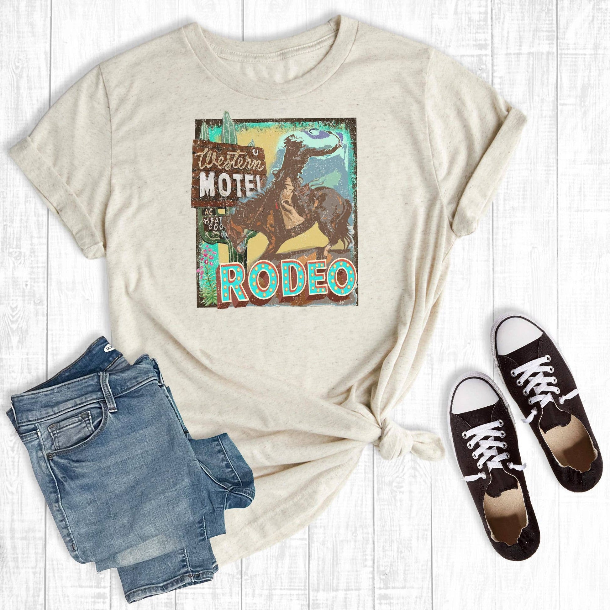 We love this vintage look graphic tee! It’s just dying to be worn to your next concert or happy hour.