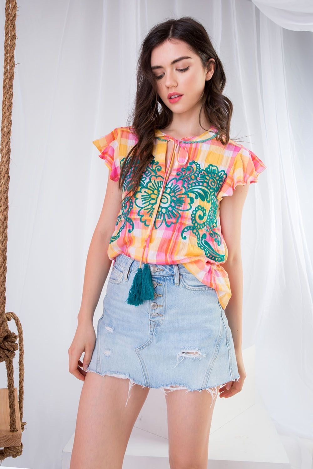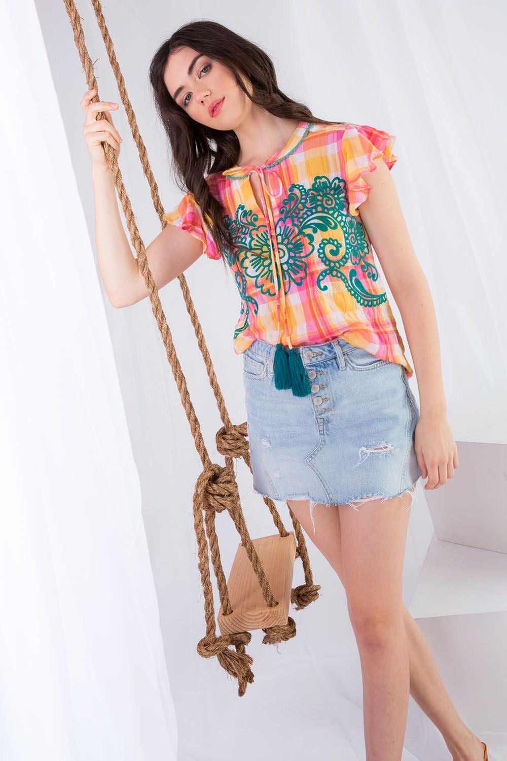 The color combo on this THML top is everything! Teal, orange, cream, and pink...it’s an uncommon blend of colors and embroidery and it is gorgeous! The tassel tie just tops off its greatness.