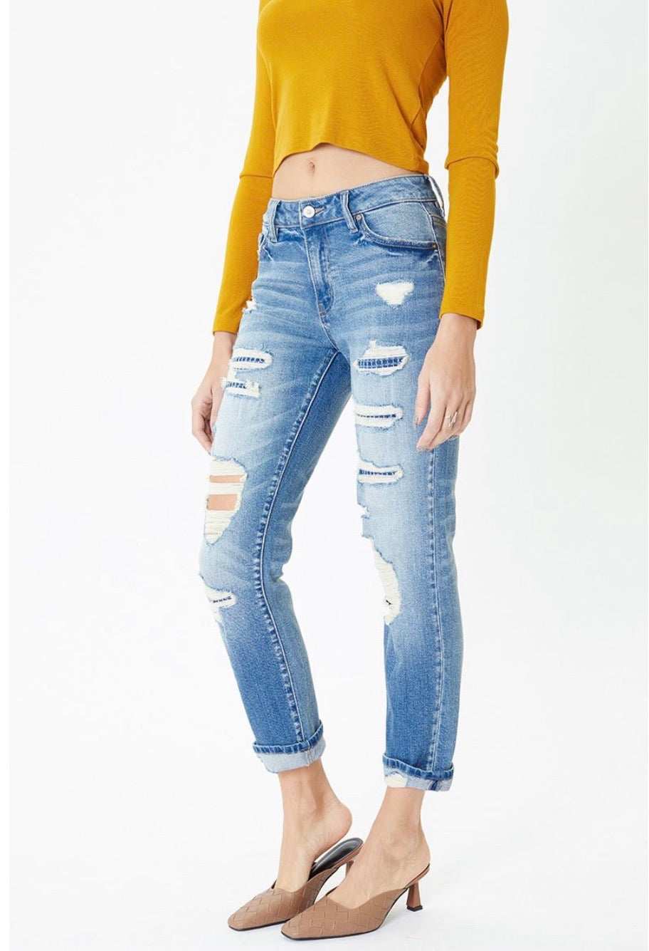 Where have these boyfriends been all my life??? The perfect weekend or going out jean in a medium wash, high rise, distressed, with some stretch! Pair these with a graphic tee and you’re ready!