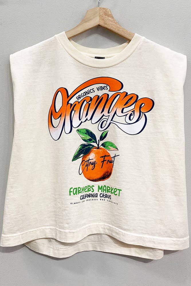 Heavyweight premium cotton oversized graphic tank with structured shoulders and slight cropped fit. This looks amazing with high-waisted jeans, shorts, or a cute skirt.