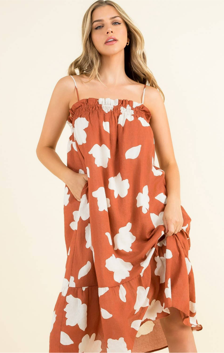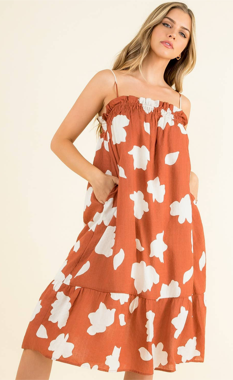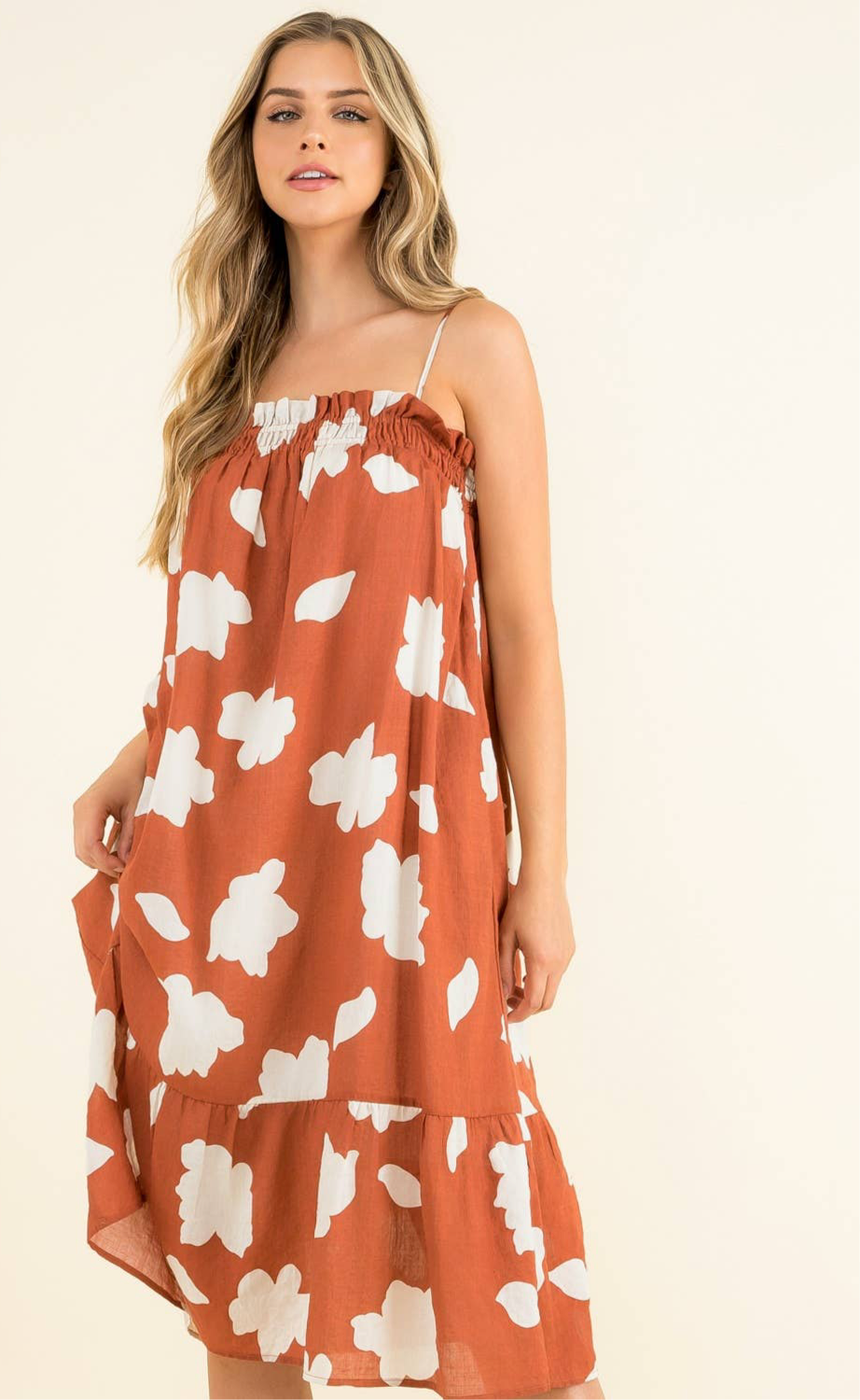 Such a gorgeous dress that is cool & super chic paired with a blazer. The perfect dress to take you from a beach vacation to the office with ease. Lined. Adjustable straps.