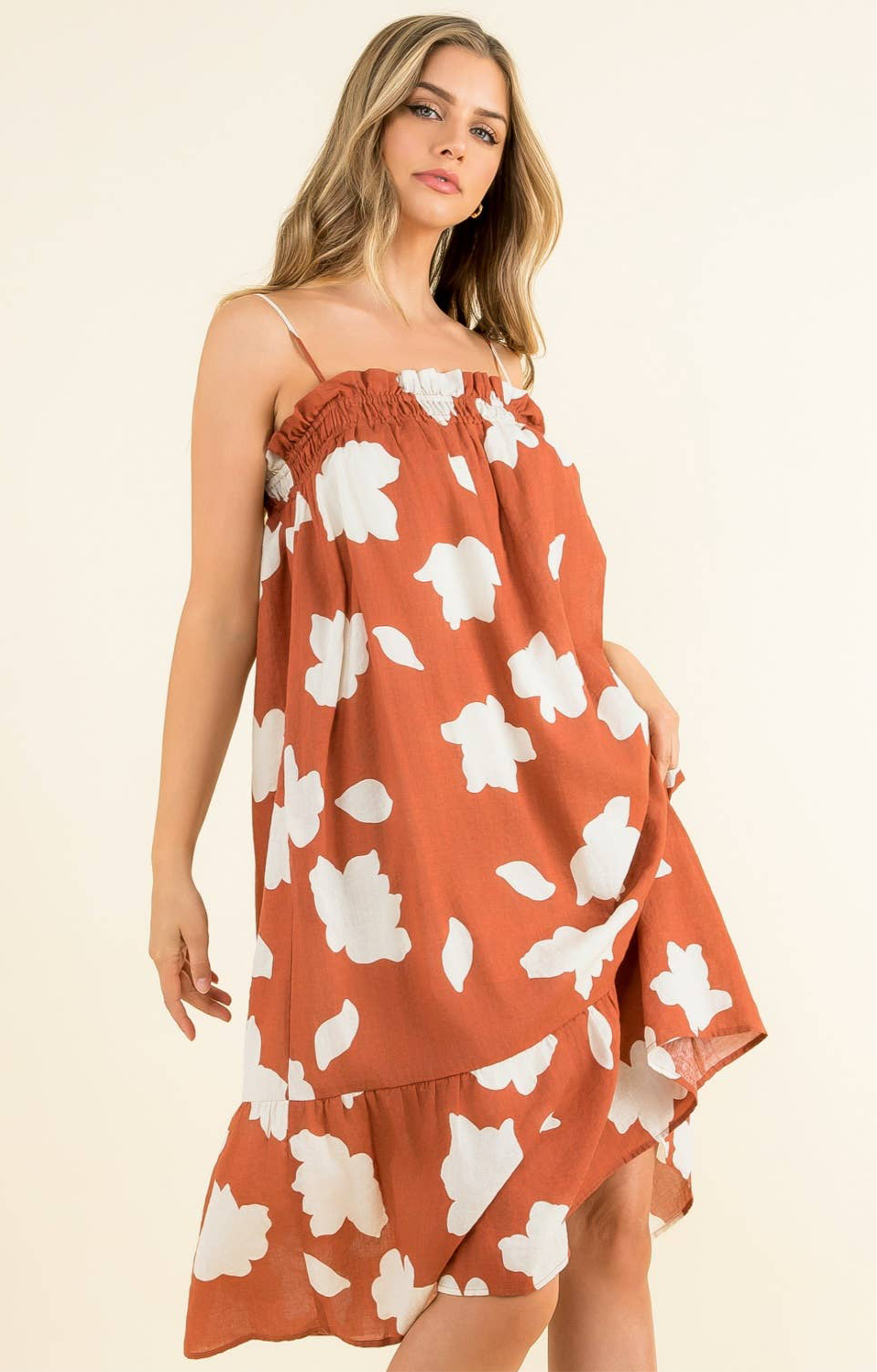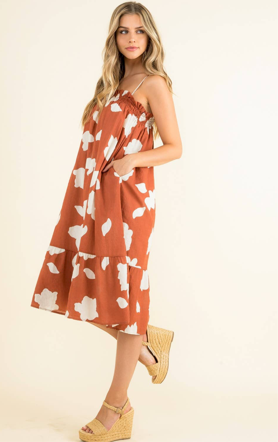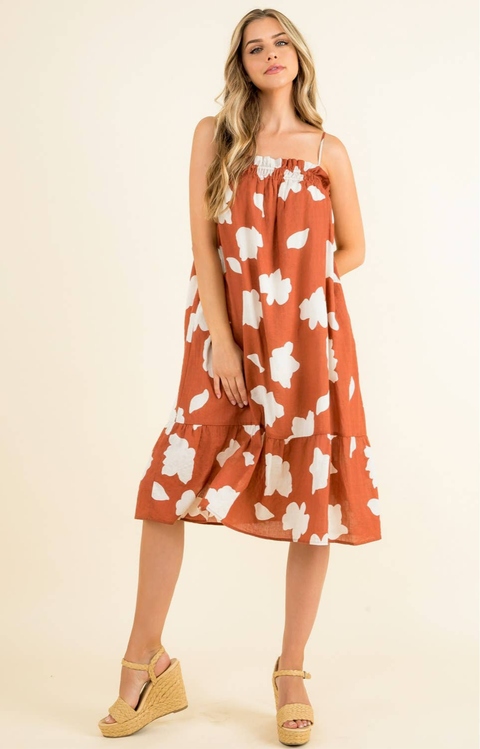 Such a gorgeous dress that is cool & super chic paired with a blazer. The perfect dress to take you from a beach vacation to the office with ease. Lined. Adjustable straps.