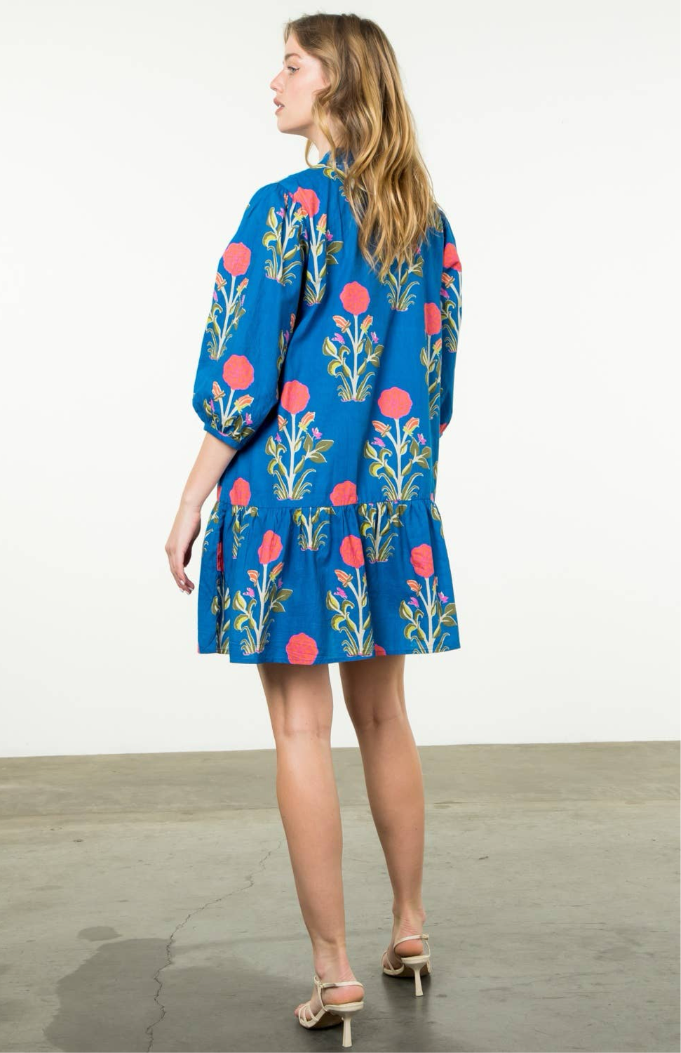 Blue Jean Baby Mid Sleeve Floral Print Dress-THML