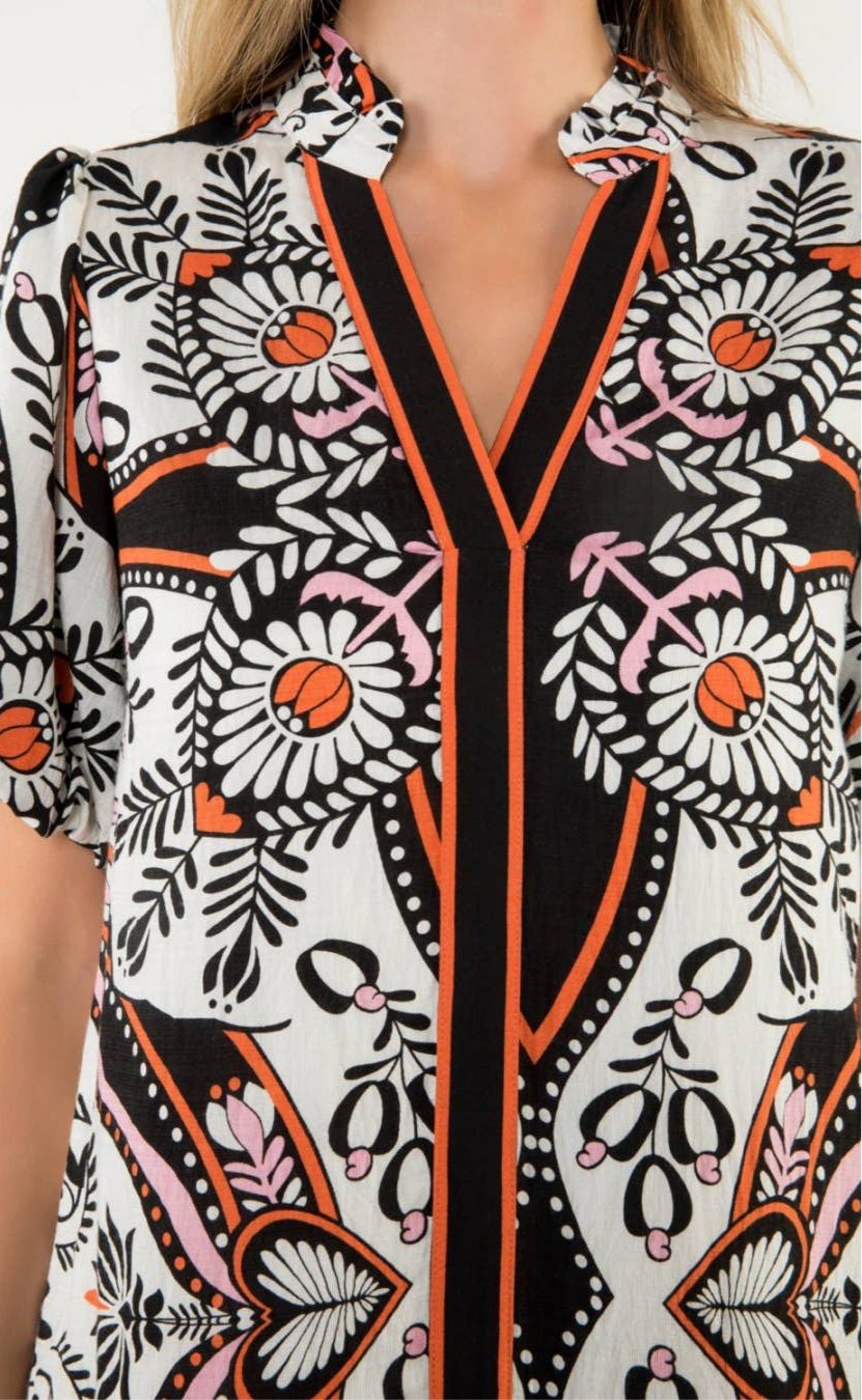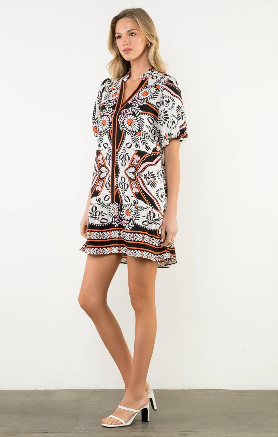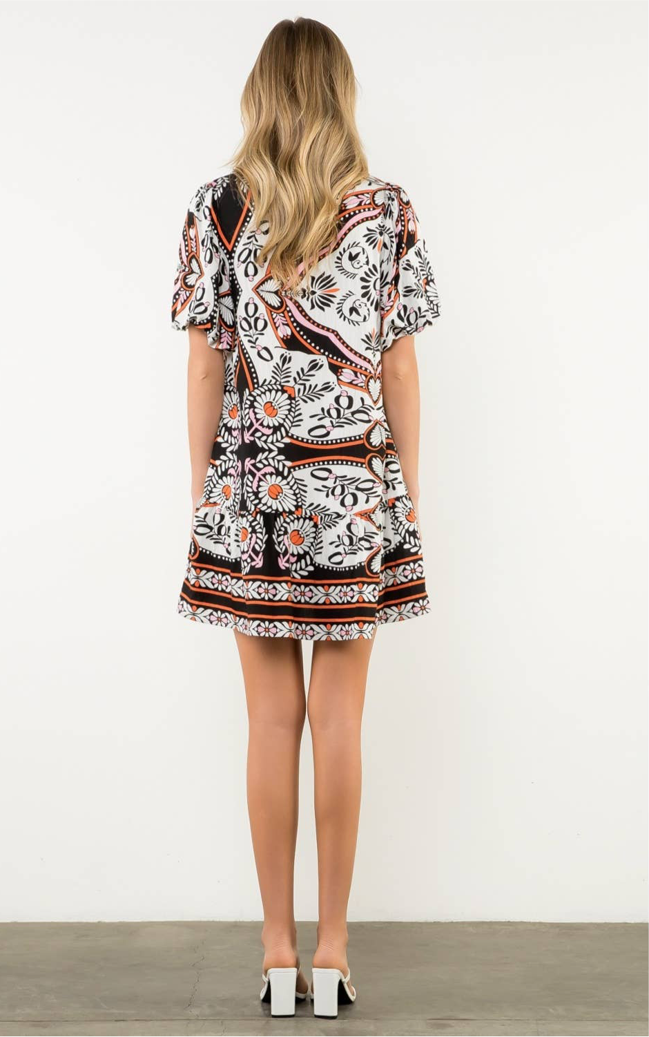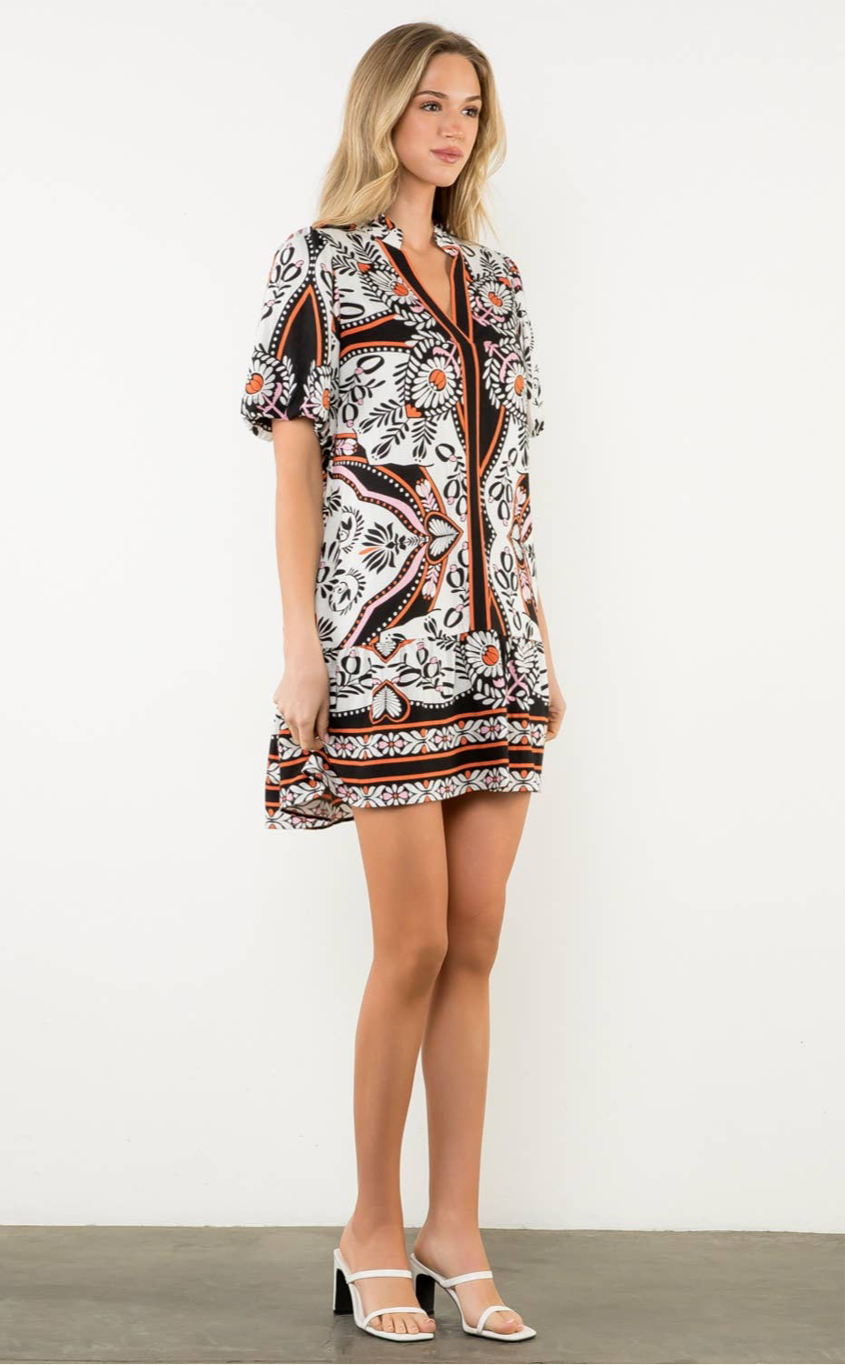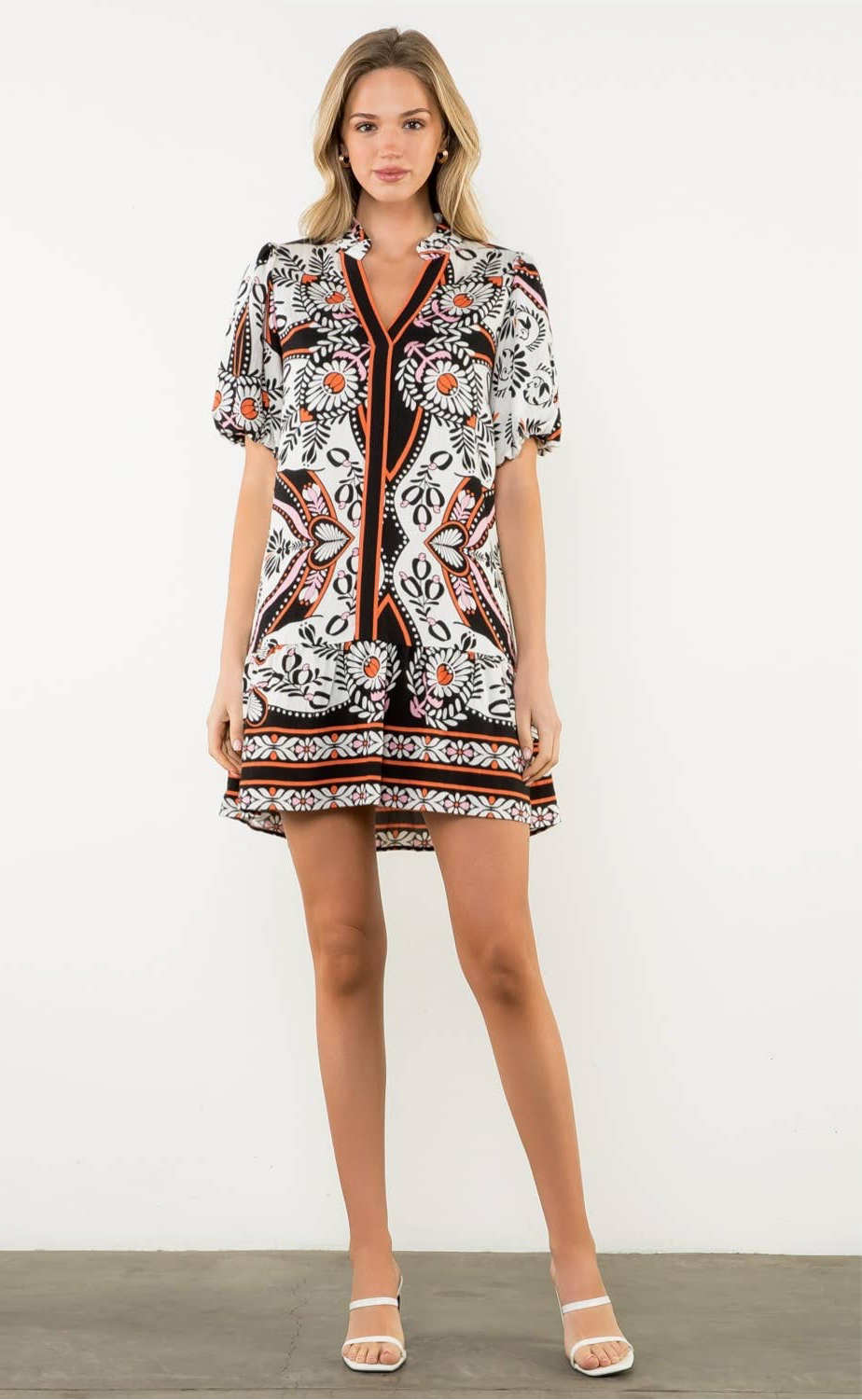 Exotic Puff Sleeve V-Neck Print Dress: THML