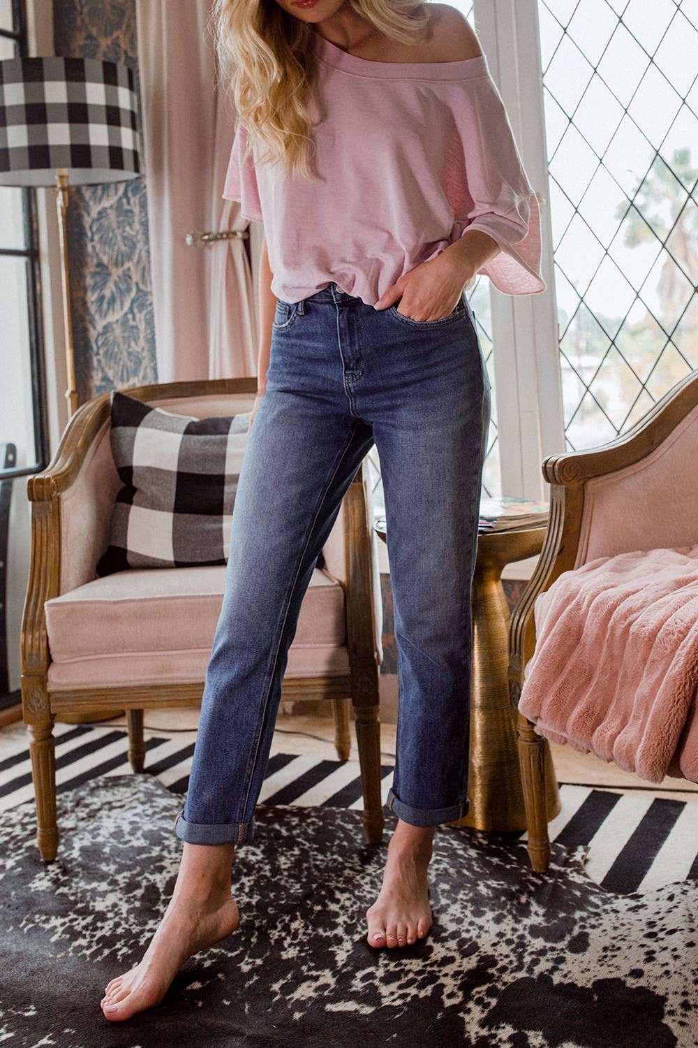 Non-distressed CUFFED STRETCH BOY FRIEND