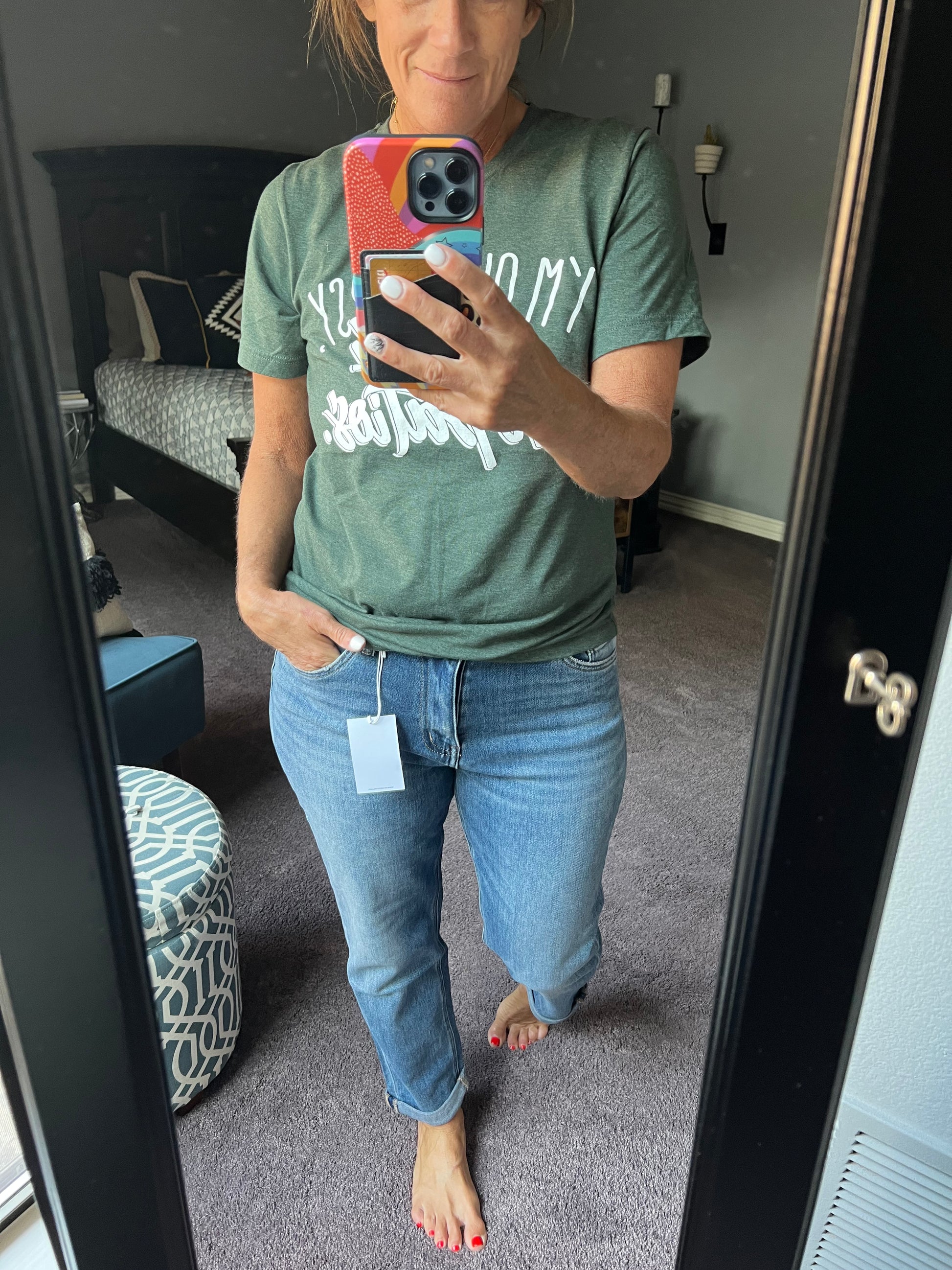 Finally in stock! A great pair of non-distressed boyfriend jeans from Vervet. These have stretch and the perfect denim wash. Order your normal Vervet size. Run TTS.