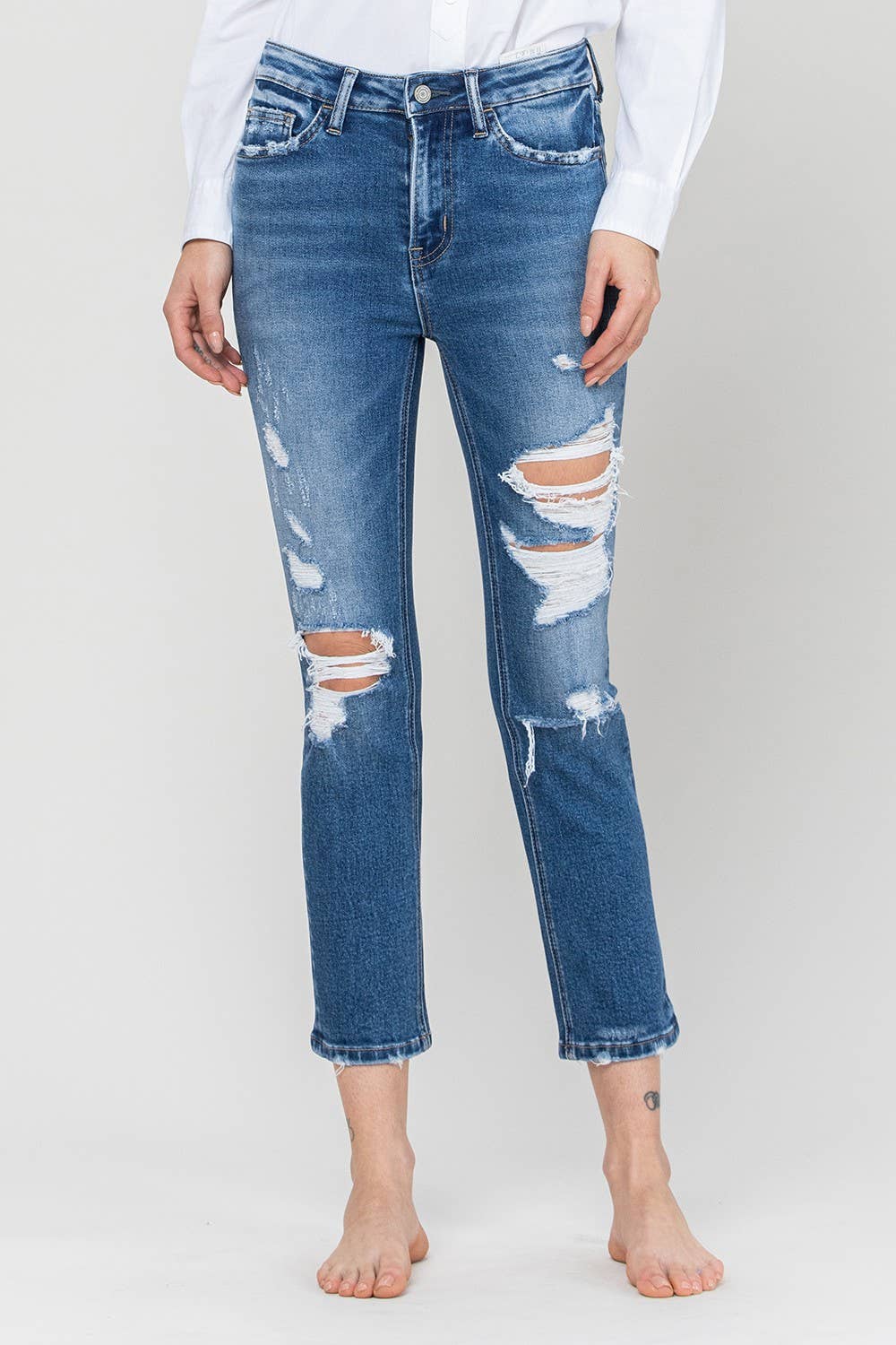DISTRESSED HIGH RISE SLIM STRAIGHT