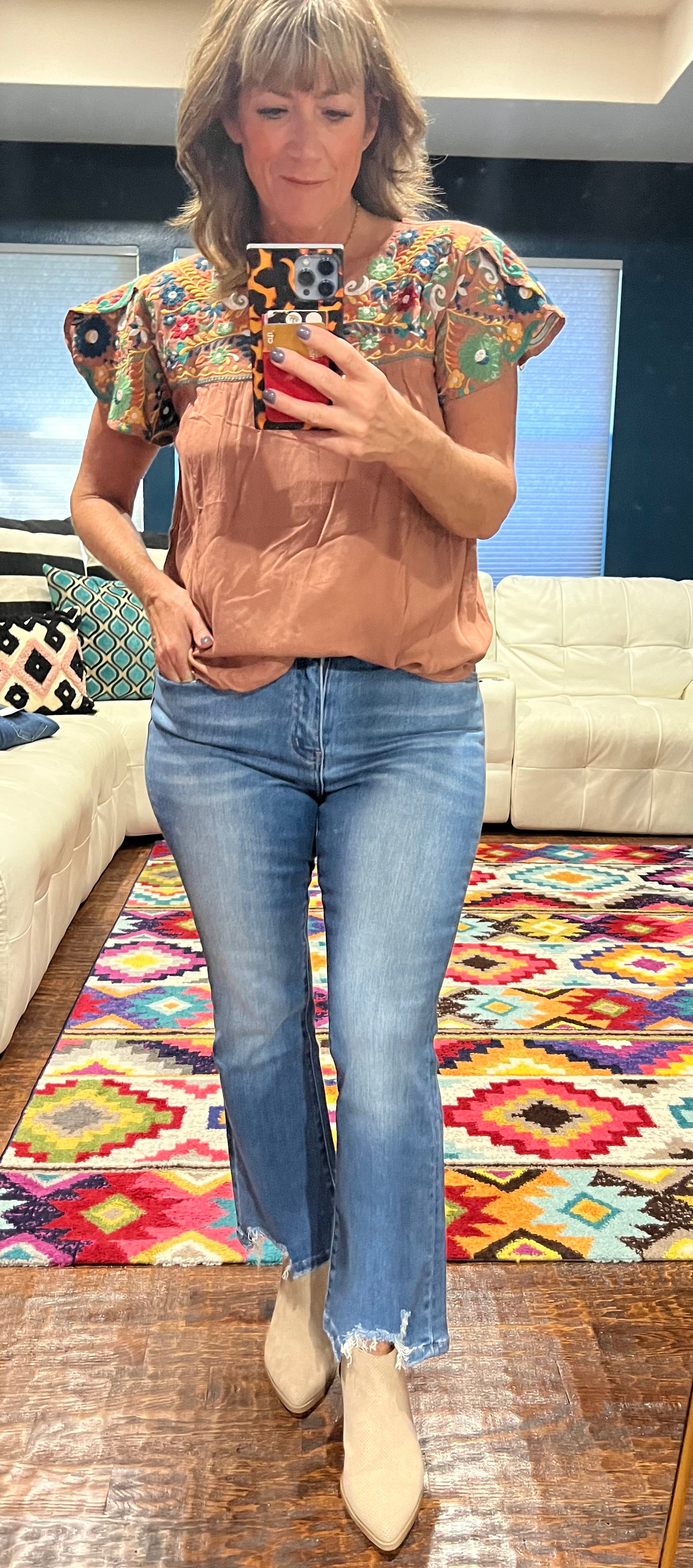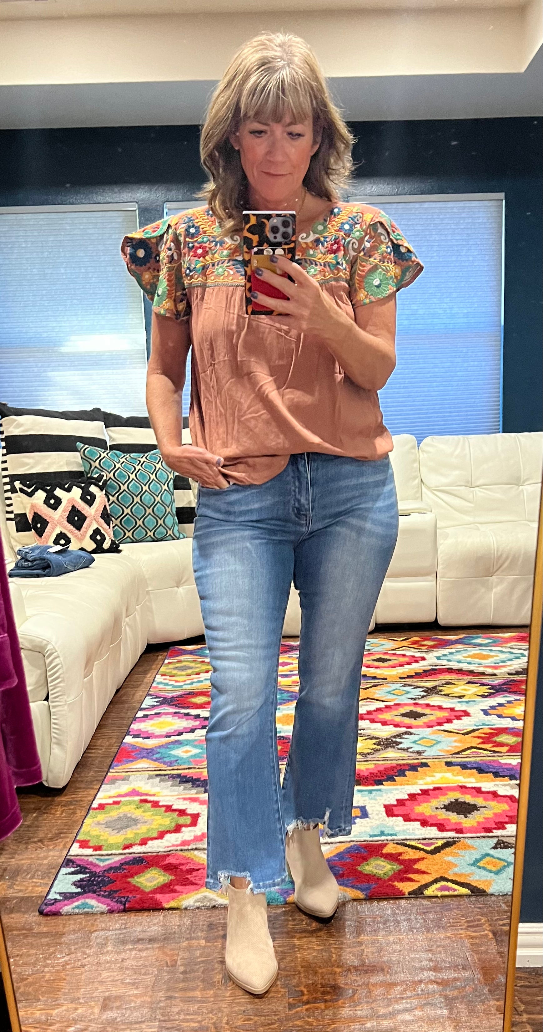 These are in my denim rotation already because they bring together fashion & comfort in the best possible way. Kick flares are everywhere, but this fit makes this pair from Vervet a classic. There is no distressing other than the hem and a small part of the back pocket. Dress them up or down, these will be your new favorites.