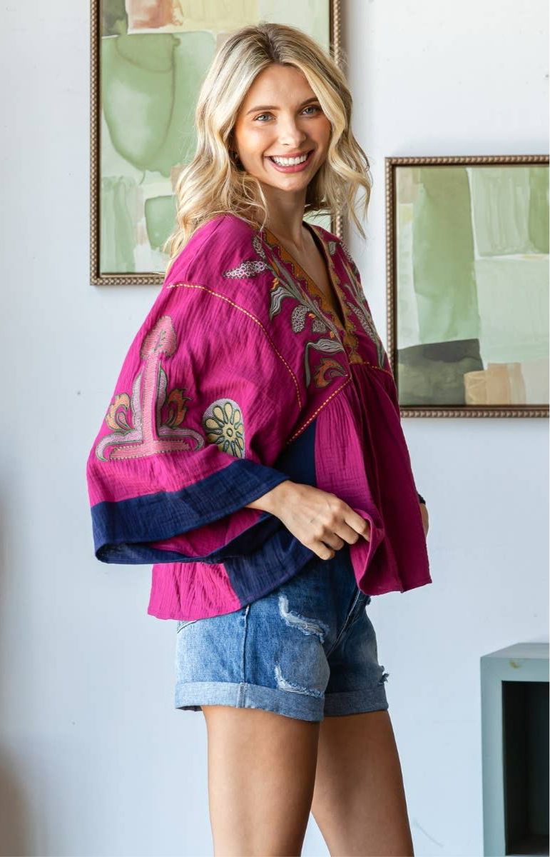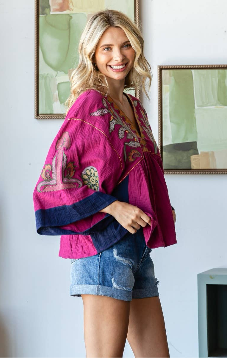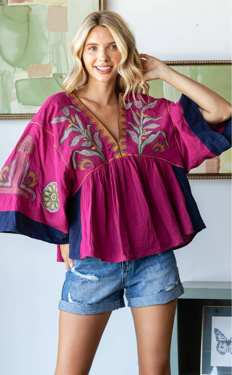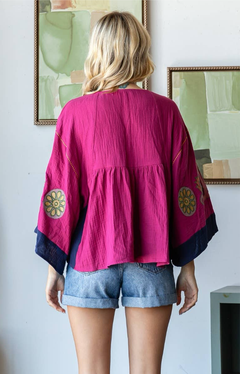 Like a Fine Wine Vintage Embroidery Patch Gauze Top